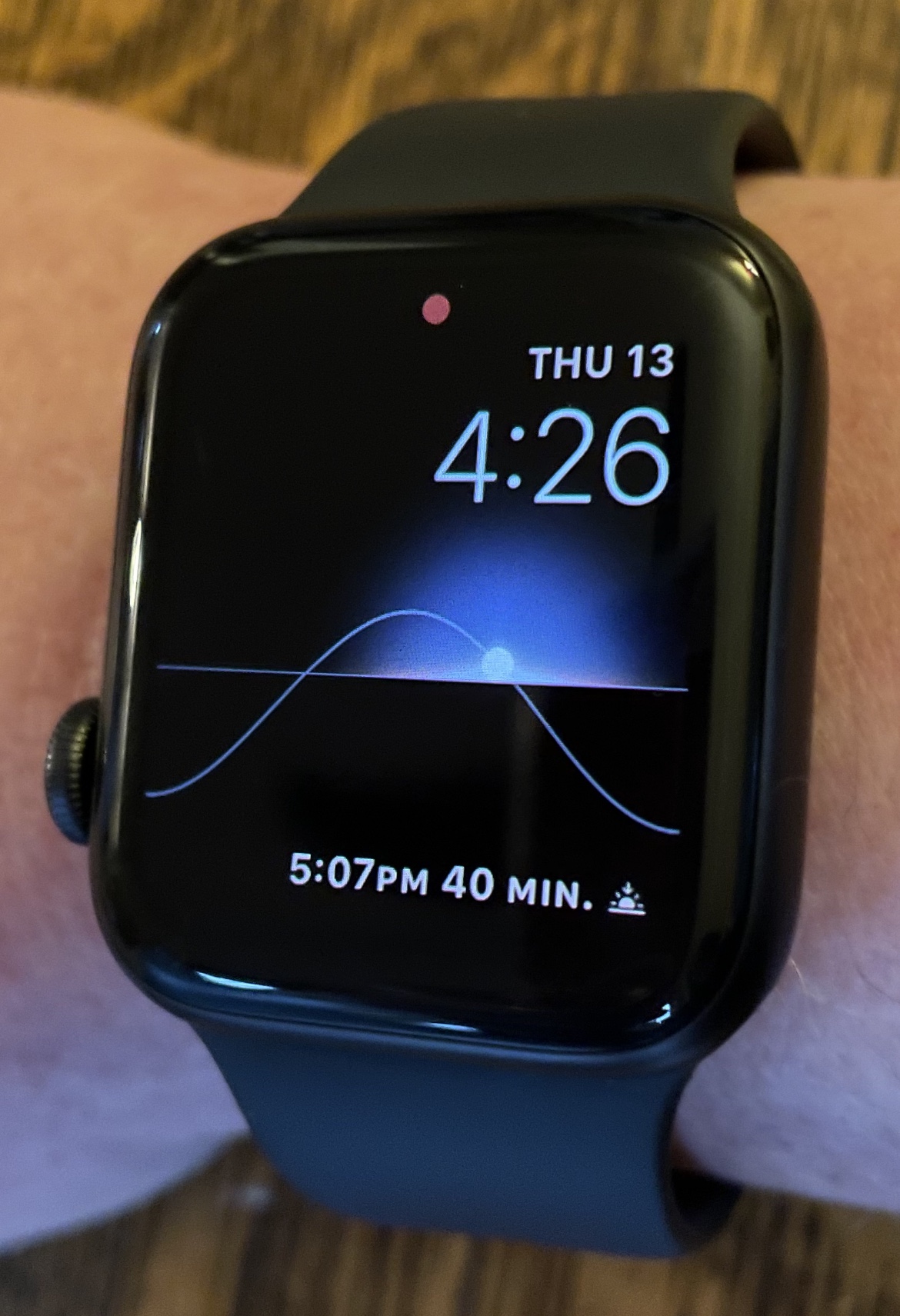I know these things because I have a watch that tells me. Well, at least, I have taken the option of having it tell me. I received an Apple watch for Christmas and I’m not mentioning this to flex, it’s just that this watch does, as they say, it ALL. For instance, you can choose from dozens of watch faces, depending on your interests and/or aesthetic. I have, as you can maybe imagine given what I’ve been talking about so far, chosen the one that lets me know all the details about the sun’s current placement in the sky overhead. I like watching it make its moves across the sky, I love the countdown to sunset, to sunrise. I love how it changes colour as the sun—a small, white disc on my wrist—moves away from or toward the horizon. It’s constant and comforting, and I didn’t realize how much I needed to see it.