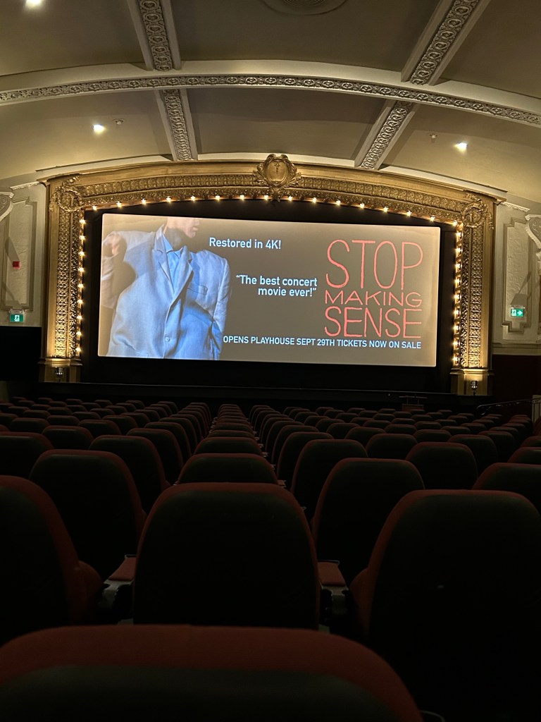 I went to see Stop Making Sense at the Playhouse Cinema earlier today. I was excited, yet a little apprehensive. On the surface, it was a fun afternoon adventure with my kid who has just recently discovered that they really love Talking Heads. But deeper, much deeper, it was something so much more.