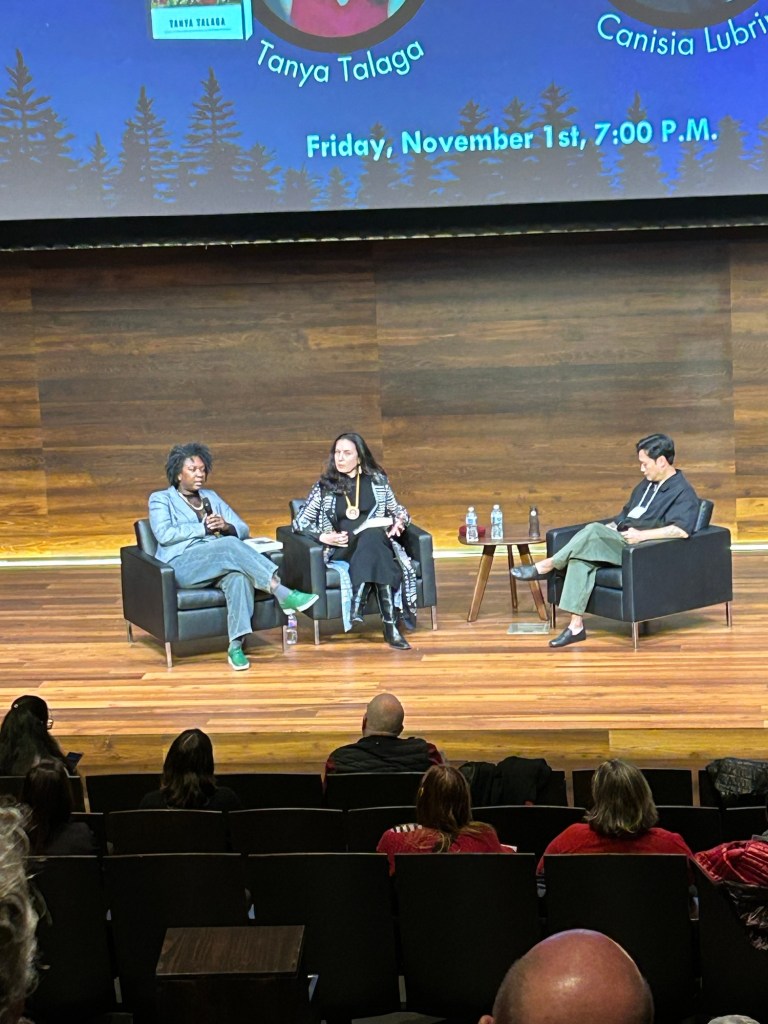 Friday night set the tone for wonderful things to come as the festival welcomed Canisia Lubrin and Tanya Talaga with moderator/interviewer Vinh Nguyen. This was a powerful conversation around truth (whose truths, and what truths get told) and disinformation and the lies we (as in Canada) have been told surrounding our history and that of the Indigenous People, in the case of Talaga’s book The Knowing, and of the Black diaspora, as shown in Lubrin’s Code Noir. The crowd was rapt and hung on absolutely every word, and both books should shoot to the top of your TBR list if they aren’t already there. A fabulous session.