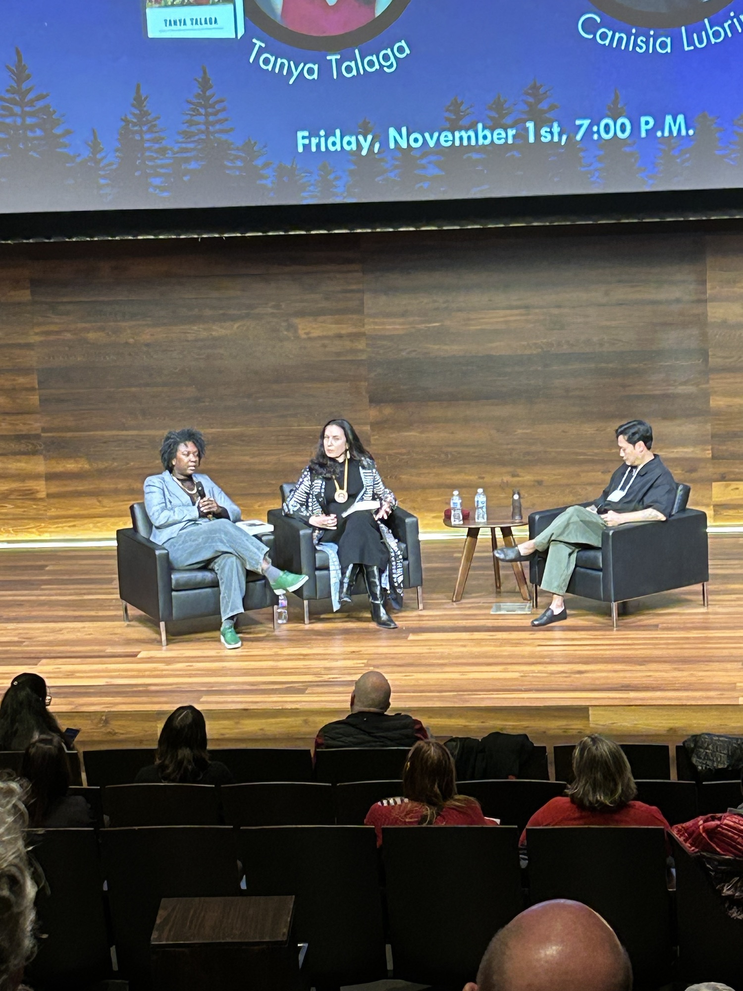 Friday night set the tone for wonderful things to come as the festival welcomed Canisia Lubrin and Tanya Talaga with moderator/interviewer Vinh Nguyen. This was a powerful conversation around truth (whose truths, and what truths get told) and disinformation and the lies we (as in Canada) have been told surrounding our history and that of the Indigenous People, in the case of Talaga’s book The Knowing, and of the Black diaspora, as shown in Lubrin’s Code Noir. The crowd was rapt and hung on absolutely every word, and both books should shoot to the top of your TBR list if they aren’t already there. A fabulous session.